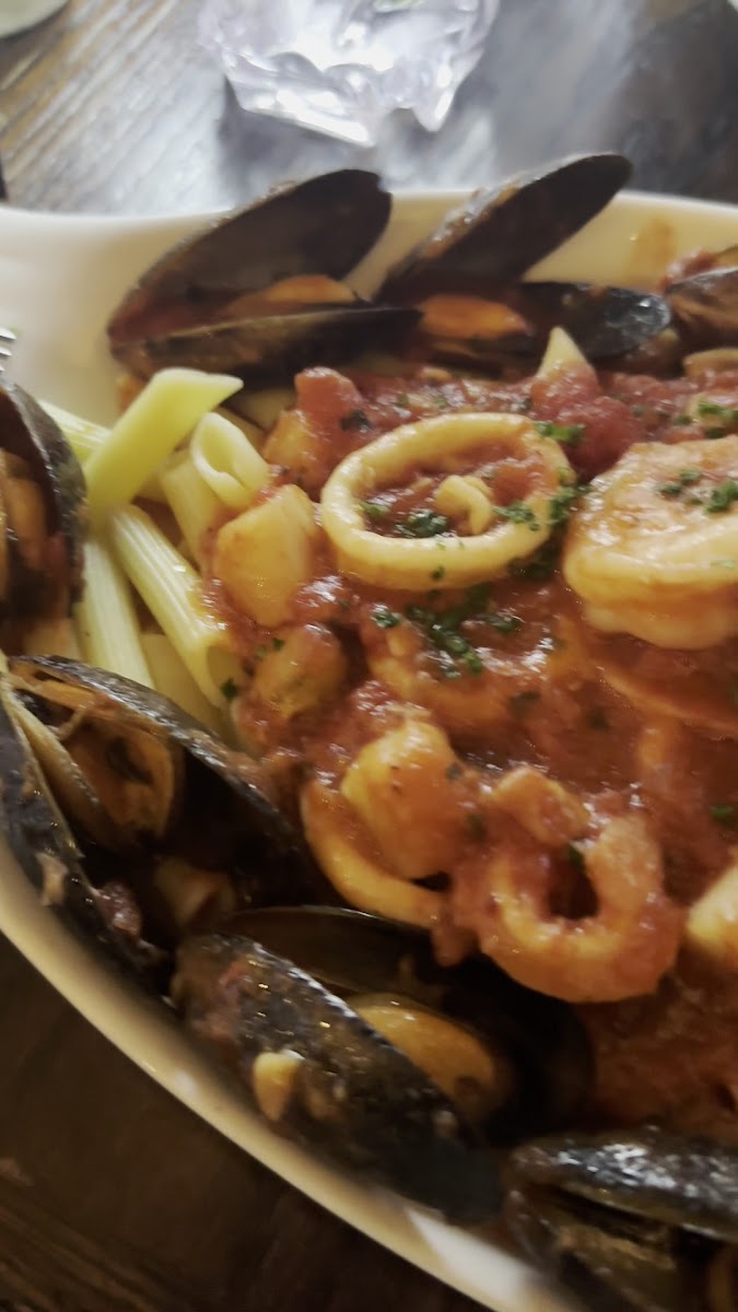A truly beautiful restaurant, typical of an Italian restaurant found on the lakeside, with truly courteous and professional staff. The fried calamari was very tasty, dry, and crispy. The pasta was also excellent, al dente as tradition demands. The desserts were spectacular; I had a tiramisu, and it felt like home. The espresso was the icing on the cake. If you're in the area, you must try it. A special thanks to Sophia, our waitress.